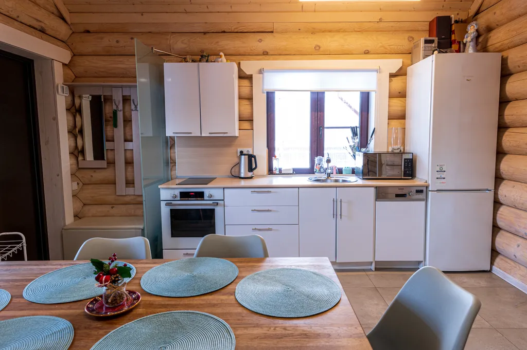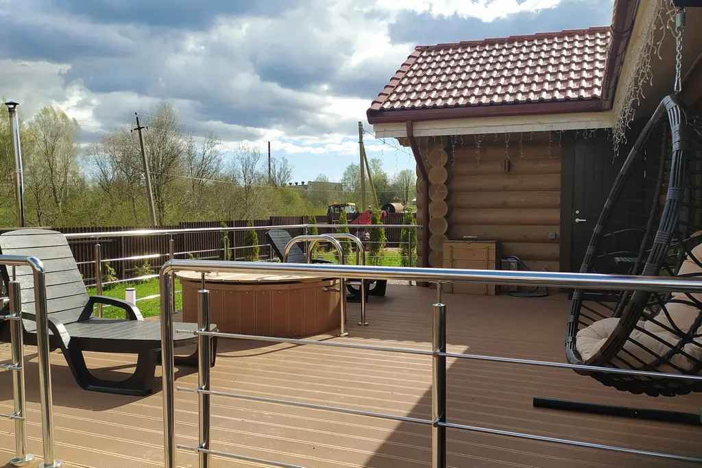 На территории обустроены спортивная площадка и зона барбекю, установлены качели и батут. В вашем распоряжении будет собственная баня в доме, купель с холодной водой на террасе и банный чан. Купель и банный чан оплачиваются отдельно.