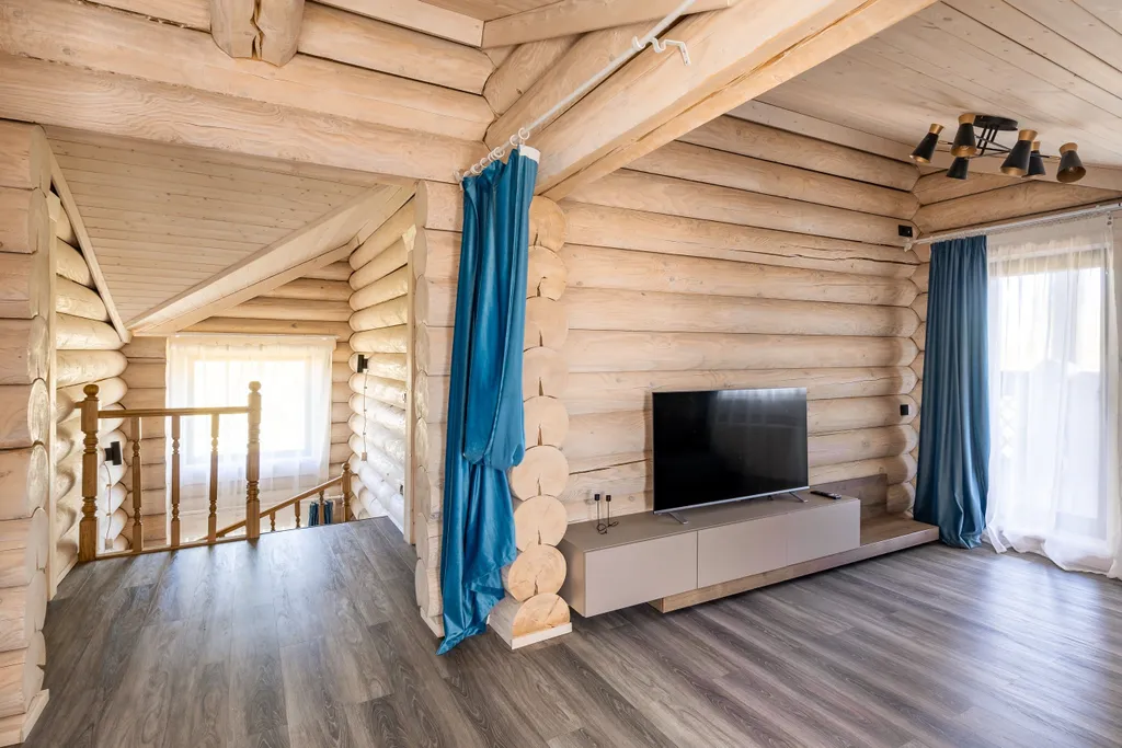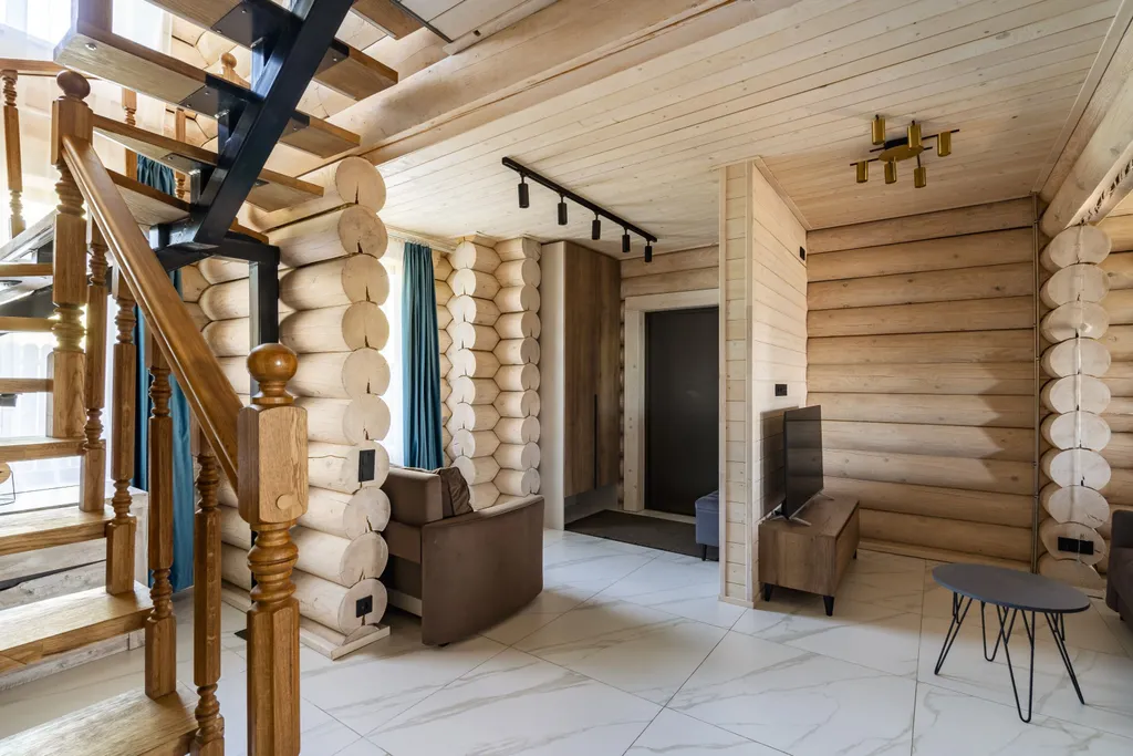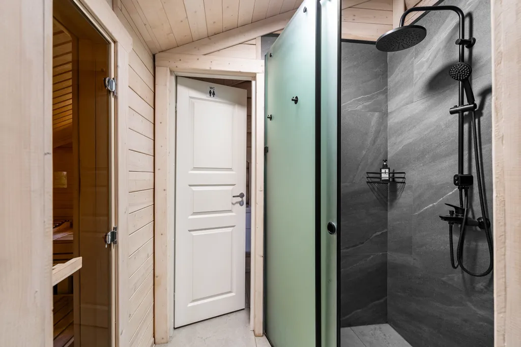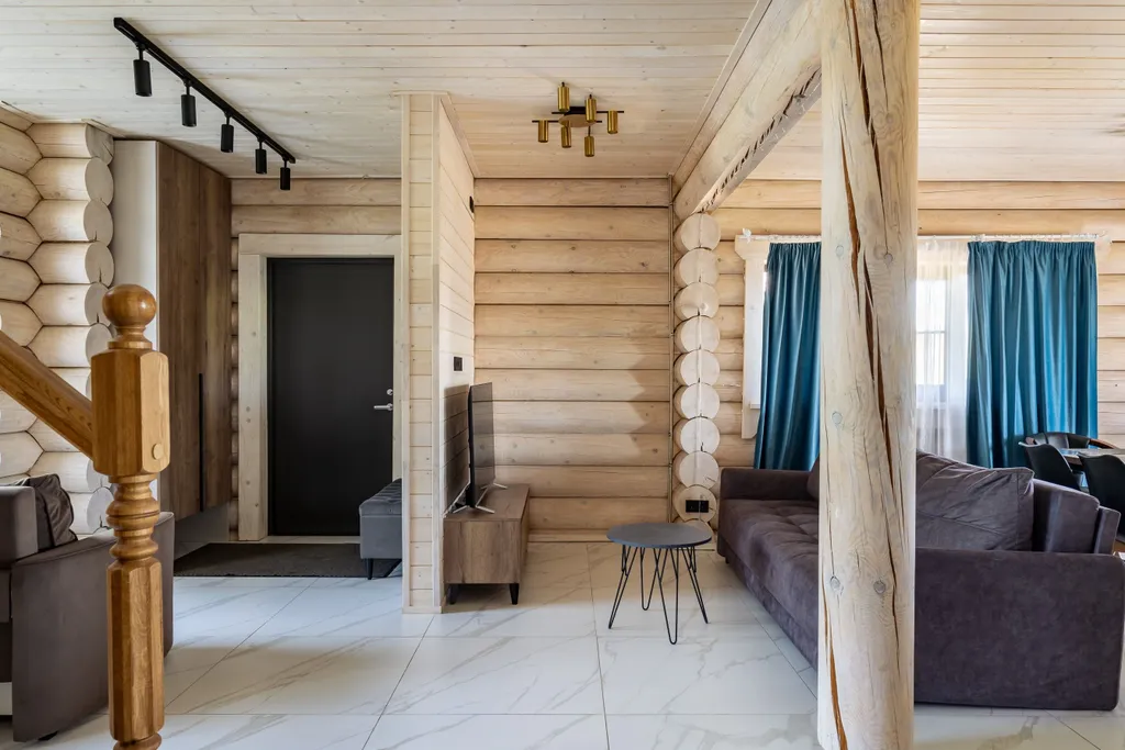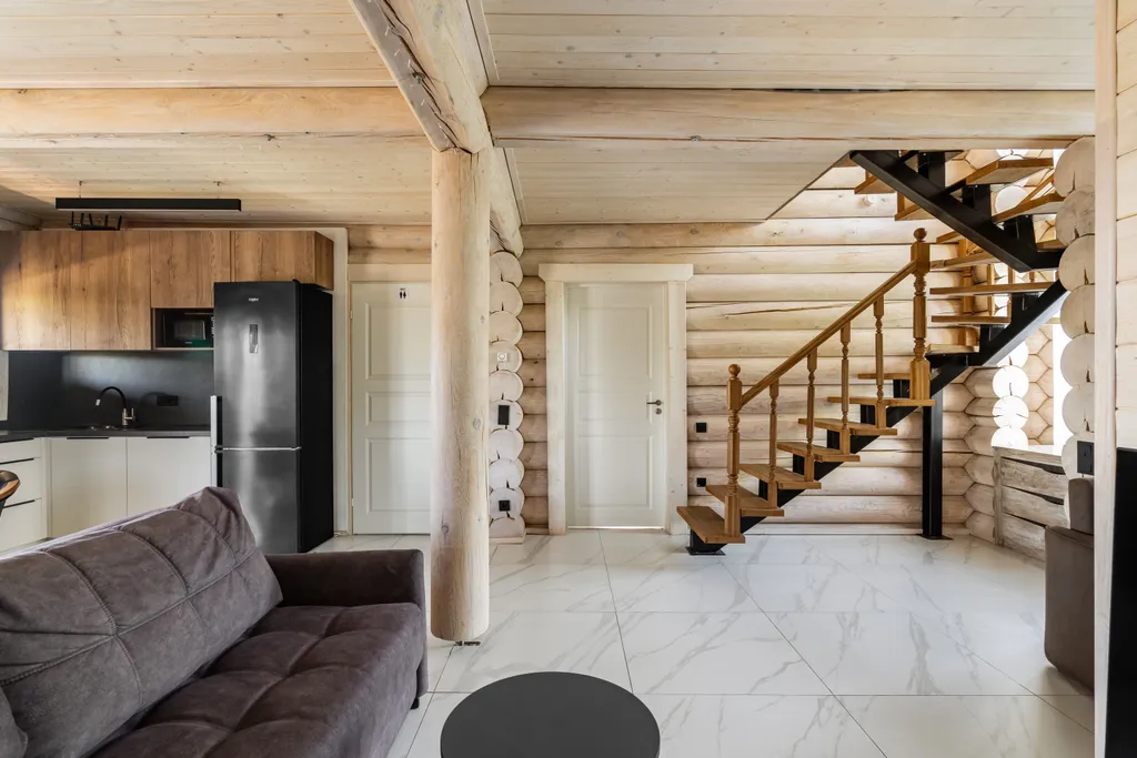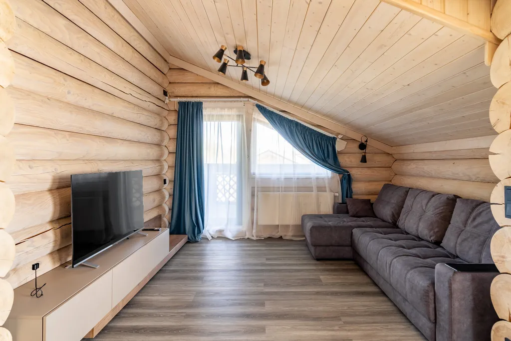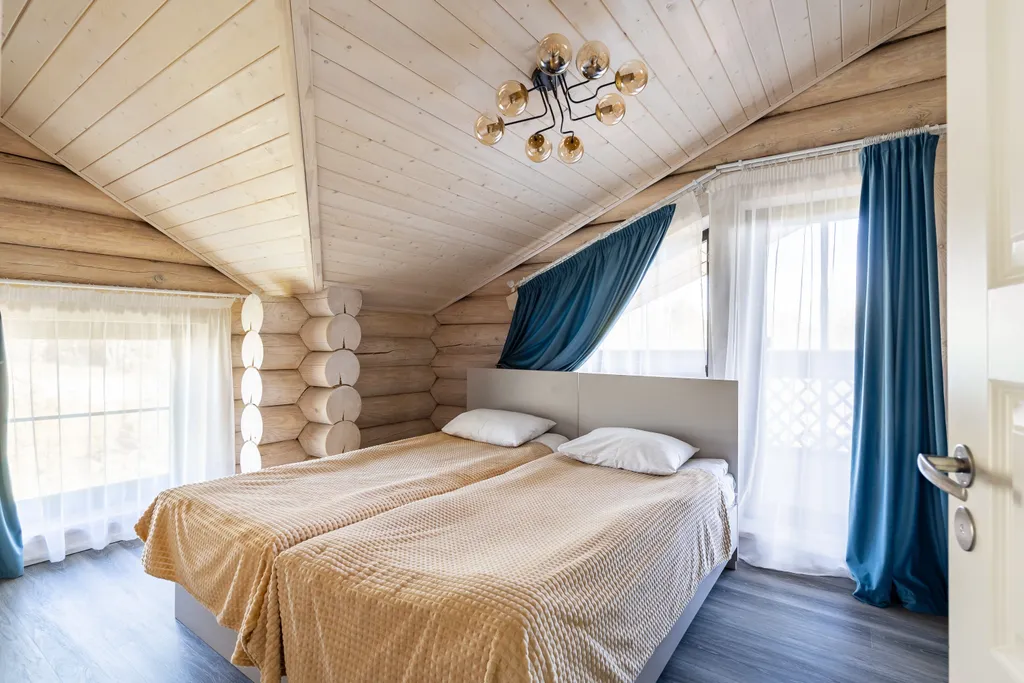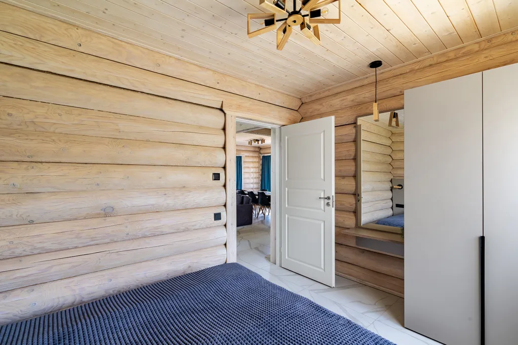 К услугам гостей 2 уютные спальни с двуспальными кроватями и 1 спальня с двумя раздельными кроватями на 1-ом и 2-ом этажах, 2 больших раскладывающихся дивана в зоне отдыха и гостиной. Кухня оборудована электроплитой, духовым шкафом и посудомоечной машиной, есть холодильник, чайник, кофеварка и микроволновая печь. В зоне кухни панорамное остекление с выходом на веранду. На каждом этаже имеется санузел и душ. Есть стиральная машина и фен. Проведено отопление, уложены теплые полы. Имеется WI-FI и цифровое ТВ.