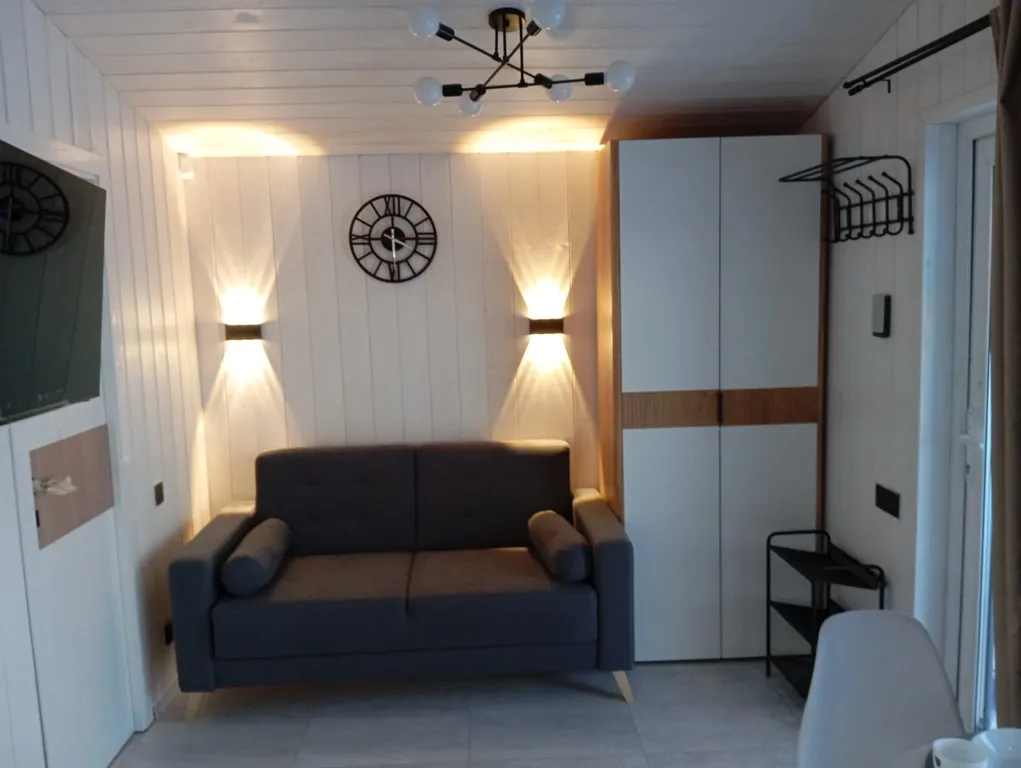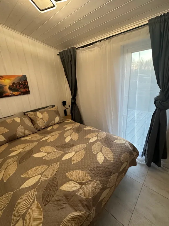 В доме могут разместиться до 4-х человек, большая 2-спальная кровать с ортопедическим матрасом 160х200 и раскладной диван на двоих 140х200.