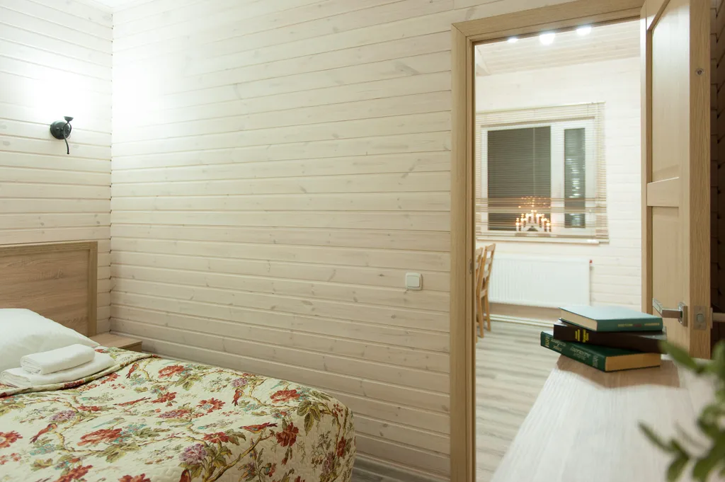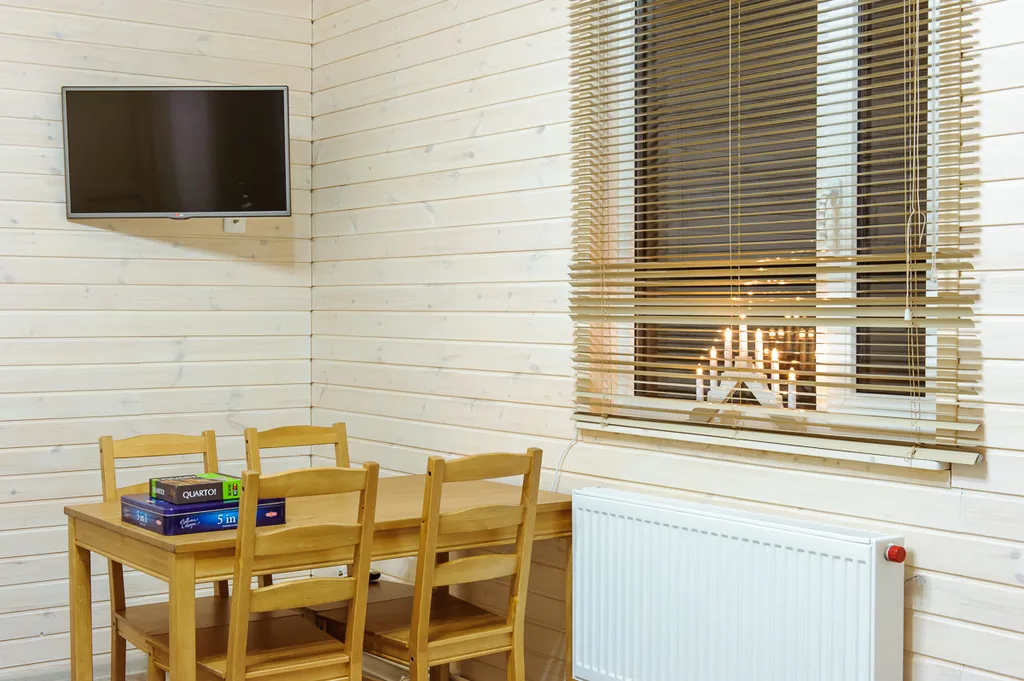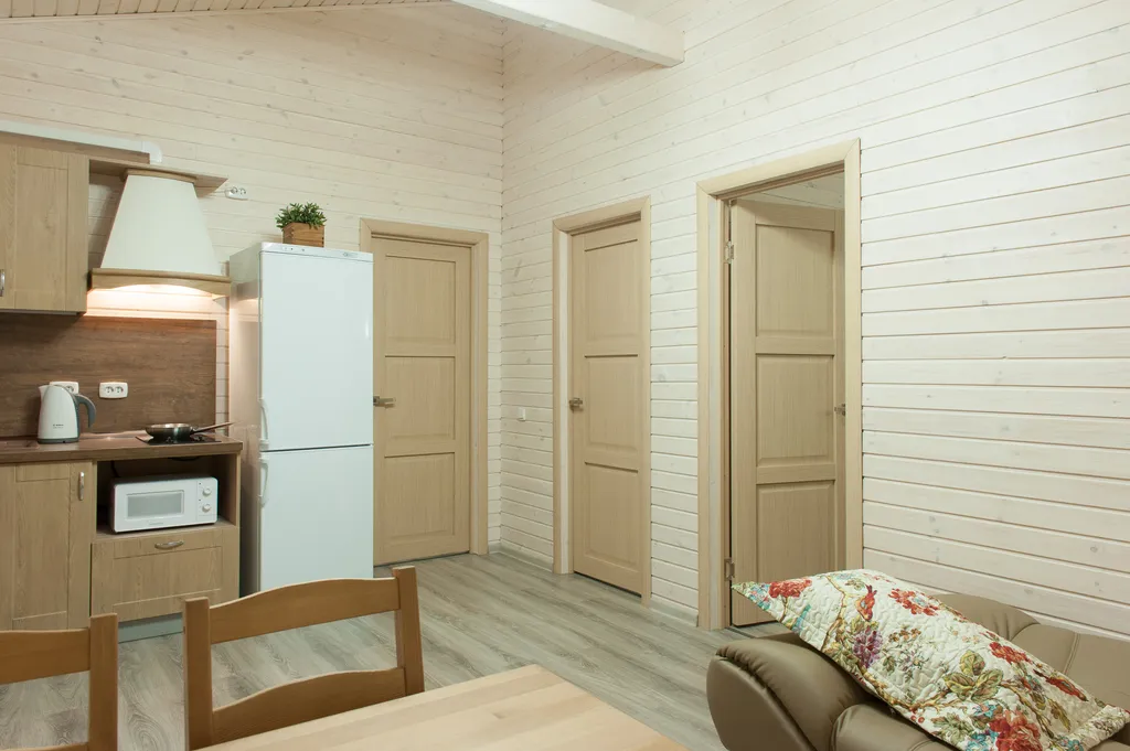 Коттеджи имеют 2 спальни, оборудованную кухню-гостиную, ЖК-панель, санузел с душем и теплым полом.